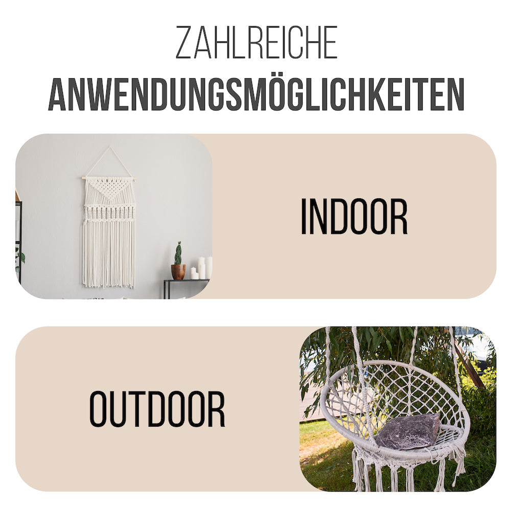 - Zahlreiche Anwendungsmöglichkeiten - Sei es ein Schlüsselanhänger, Armband, Untersetzer, Tasche oder auch ein Wandbehang, dir ist es überlassen, ob du deine DIY Projekte für den Innen oder Außenbereich, knüpfen, häkeln oder stricken möchtest.